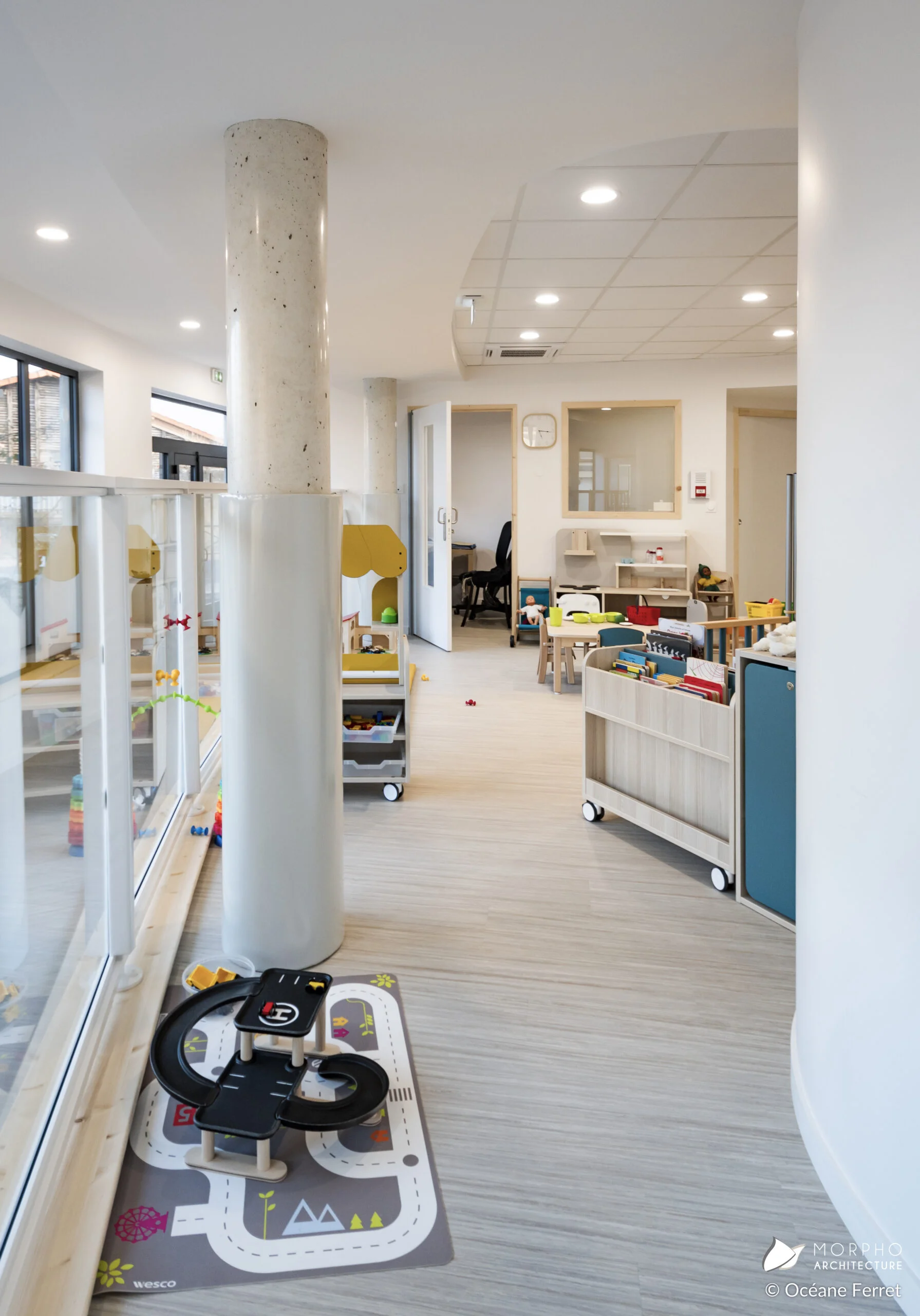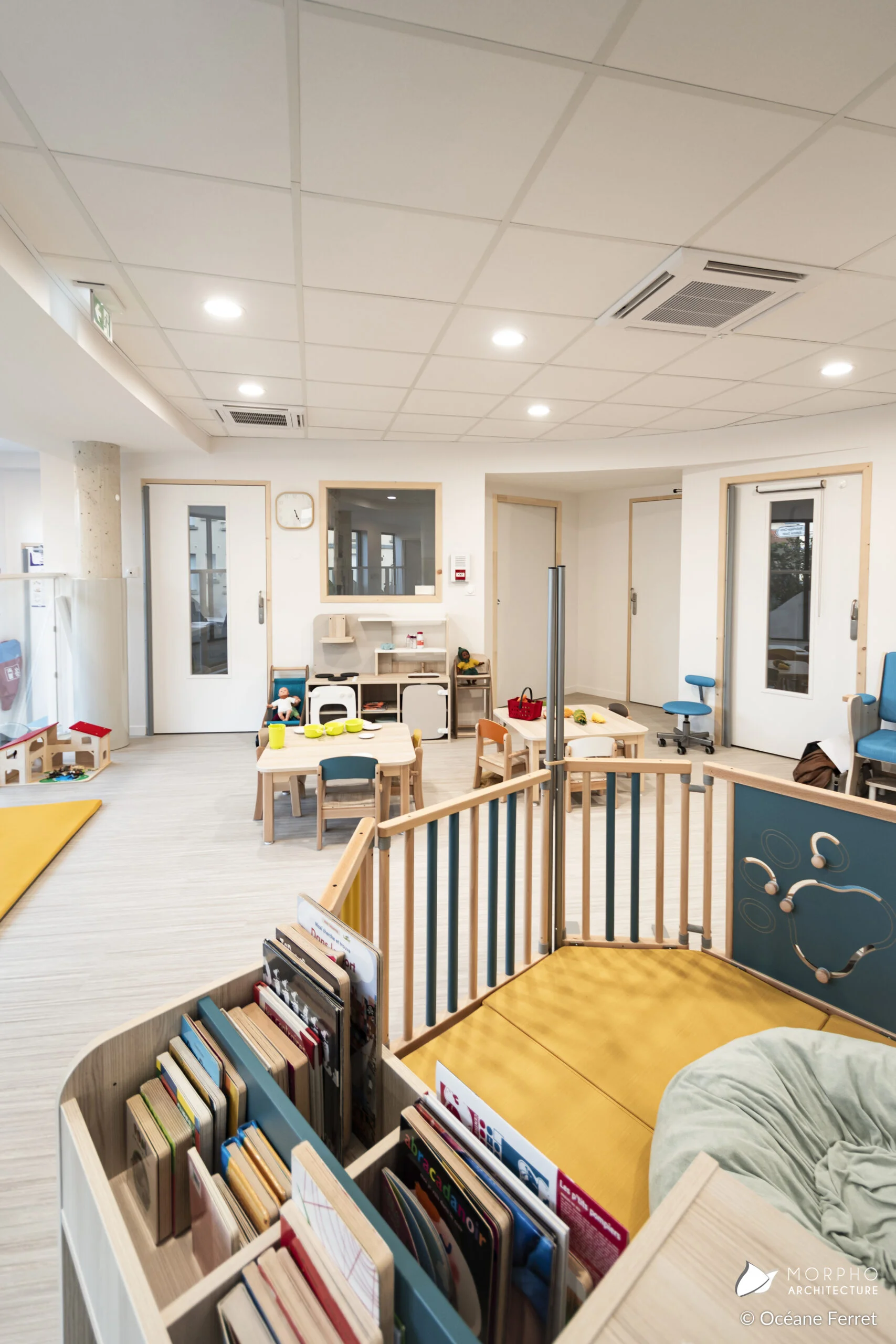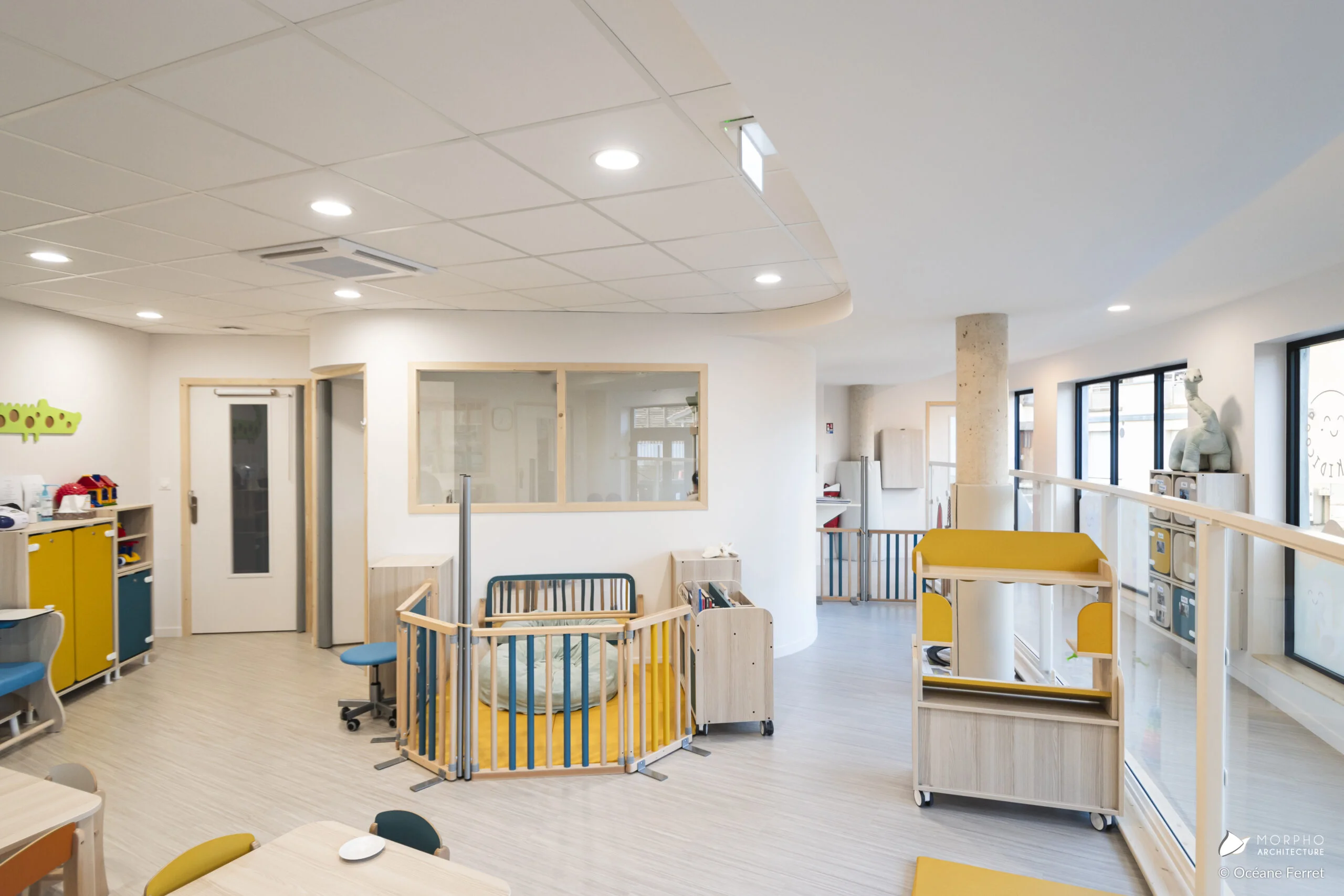 La conception de cette crèche est basé sur des environnements lumineux et accueillants où chaque espace est pensé pour favoriser l’épanouissement et la joie des enfants.